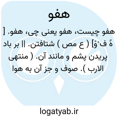 هفو. [ هَُ ف ُوو ] ( ع مص ) بر باد پریدن پشم و مانند آن. ( منتهی الارب ) ( از تاج المصادر ). || بردن و جنبانیدن باد پشم و پنبه را. ( منتهی الارب ).