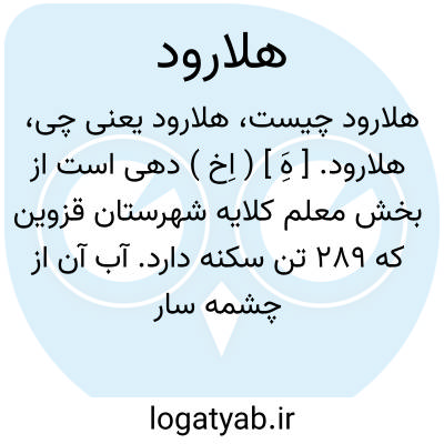 هلارود. [ هَِ ] ( اِخ ) دهی است از بخش معلم کلایه شهرستان قزوین که 289 تن سکنه دارد. آب آن از چشمه سار و محصول عمده اش غله، انگور، هلو و زردآلو، و کاردستی مردم چادرشب بافی و گیوه چینی است. ( از فرهنگ جغرافیائی ایران ج 1 ).