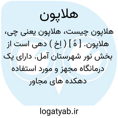 هلاپون. [ هََ ] ( اِخ ) دهی است از بخش نور شهرستان آمل. دارای یک درمانگاه مجهز و مورد استفاده دهکده های مجاور است. ( از فرهنگ جغرافیائی ایران ج 3 ).