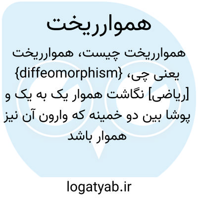 {diffeomorphism} [ریاضی] نگاشت هموار یک به یک و پوشا بین دو خمینه که وارون آن نیز هموار باشد
