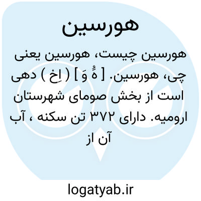 هورسین. [ هَُ وَ ] ( اِخ ) دهی است از بخش صومای شهرستان ارومیه. دارای 372 تن سکنه، آب آن از کوهستان و محصول عمده اش غله و توتون و کار دستی مردم جاجیم بافی است. ( از فرهنگ جغرافیایی ایران ج 4 ).