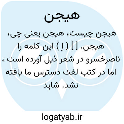 هیجن. [ ] ( اِ ) این کلمه را ناصرخسرو در شعر ذیل آورده است، اما در کتب لغت دسترس ما یافته نشد. شاید بتوان گفت که به ضرورت شعری از مصدر هیج و هیجان و هیاج عربی به معنی به خشم شدن و برانگیخته شدن و برانگیختن به صورت مورد اشاره به کار برده باشد: