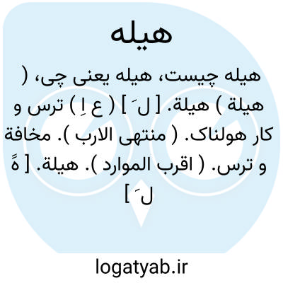( هیلة ) هیلة. [ ل َ ] ( ع اِ ) ترس و کار هولناک. ( منتهی الارب ). مخافة و ترس. ( اقرب الموارد ).