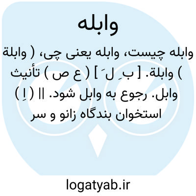 ( وابلة ) وابلة. [ ب ِ ل َ ] ( ع ص ) تأنیث وابل. رجوع به وابل شود. || ( اِ ) استخوان بندگاه زانو و سر بازو. ( مهذب الاسماء ) ( منتهی الارب ). || کرانه کتف از سر بازو. || استخوانی است در بند زانو. || بازو. || سر زانو. || آنچه پیچیده باشد از گوشت زانو. ( منتهی الارب ). || نژاد شتر و گوسفند. وابلة. [ ب ِ ل َ ] ( اِخ ) ابن الاشفع. در تاریخ گزیده چ عکسی ص 24 چنین آمده است: «وابلةبن الاشفع در سنه خمس و ثمانین به شام درگذشت ». ولی درست به نظر نمیرسد و ظاهراً تحریفی از وائلةبن الاسقع است. رجوع به وائلةبن الاسقع شود.