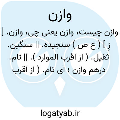 وازن. [ زِ ] ( ع ص ) سنجیده. || سنگین. ثقیل. ( از اقرب الموارد ). || تام. درهم وازن؛ ای تام. ( از اقرب الموارد ) ( از ناظم الاطباء ). درهم وازن، درهم باسنگ. ( منتهی الارب ).
