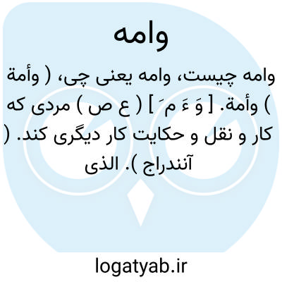 ( وأمة ) وأمة. [ وَ ءَ م َ ] ( ع ص ) مردی که کار و نقل و حکایت کار دیگری کند. ( آنندراج ). الذی یعمل کما یصنع غیره فیحکیه. ( المنجد ).