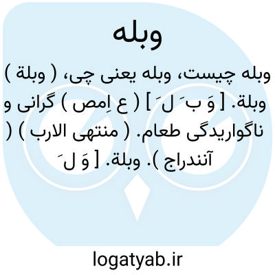 ( وبلة ) وبلة. [ وَ ب َ ل َ ] ( ع اِمص ) گرانی و ناگواریدگی طعام. ( منتهی الارب ) ( آنندراج ).