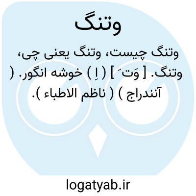 وتنگ. [ وَت َ ] ( اِ ) خوشه انگور. ( آنندراج ) ( ناظم الاطباء ).