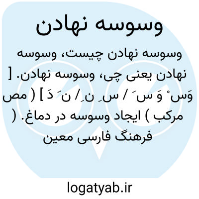 وسوسه نهادن. [ وَس ْ وَ س َ / س ِ ن ِ/ ن َ دَ ] ( مص مرکب ) ایجاد وسوسه در دماغ. ( فرهنگ فارسی معین ): چون قیصر آرمانوس به ولایت خودرسید شیطان خذلان در دل و وسوسه در دماغ او نهاد. ( فرهنگ فارسی معین از سلجوقنامه ظهیری چ خاور ص 27 ).