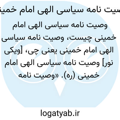 [ویکی نور] وصیت نامه سیاسی الهی امام خمینی(ره). وصیت نامه سیاسی - الهی امام خمینی(ره)، متن کامل وصیت نامه سیاسی - الهی، رهبر کبیر انقلاب اسلامی امام خمینی(ره) است که توسط مؤسسه تنظیم و نشر آثار امام خمینی(ره)، تهیه و به زبان فارسی عرضه شده است.