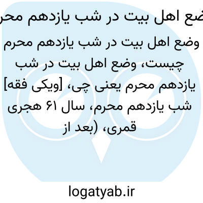 [ویکی فقه] شب یازدهم محرم، سال ۶۱ هجری قمری، (بعد از شهادت امام حسین (علیه السّلام) و اصحابش) سخت ترین شبی بوده که بر خاندان امام حسین (علیه السّلام) گذشته است.