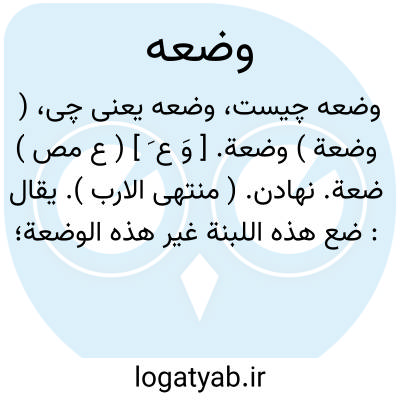 ( وضعة ) وضعة. [ وَ ع َ ] ( ع مص ) ضعة. نهادن. ( منتهی الارب ). یقال: ضع هذه اللبنة غیر هذه الوضعة؛ یعنی بِنِه این خشت را جز این نهادن. ( از منتهی الارب ) ( ناظم الاطباء ). || ( اِ ) نوع و هیأت ِ نهادن. ( ناظم الاطباء ). || موضع و مرکز. ( از اقرب الموارد ). گویند: ضع اللبنة غیر هذه الوضعة. ( از اقرب الموارد ).