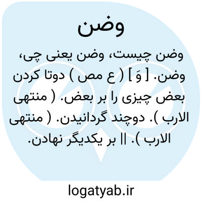 وضن. [ وَ ] ( ع مص ) دوتا کردن بعض چیزی را بر بعض. ( منتهی الارب ). دوچند گردانیدن. ( منتهی الارب ). || بر یکدیگر نهادن. ( منتهی الارب ) ( اقرب الموارد ). || نوار بافتن. ( منتهی الارب ) ( اقرب الموارد ) ( ناظم الاطباء ). || به جواهر مرصع کردن چیزی. ( ترجمان علامه جرجانی ترتیب عادل بن علی ) ( تاج المصادر بیهقی ) ( آنندراج ).