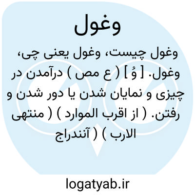 وغول. [ وُ ] ( ع مص ) درآمدن در چیزی و نمایان شدن یا دور شدن و رفتن. ( از اقرب الموارد ) ( منتهی الارب ) ( آنندراج ). || در میان درخت پنهان شدن. ( از اقرب الموارد ) ( تاج المصادر ).