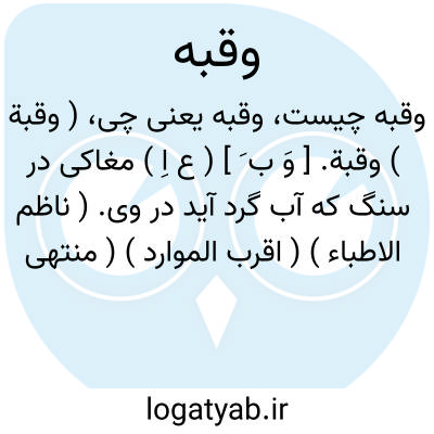 (وَ بَ یا بِ ) [ ع. وقبة ] (اِ. ) ۱ - مغاکی در کوه به اندازة یک قامت که آب در آن گرد آید. ۲ - روزنی بزرگ که پرتو آفتاب از آن آید. ۳ - یکی از اجزای دوات قلمدان.