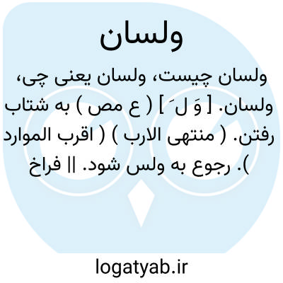 ولسان. [ وَ ل َ ] ( ع مص ) به شتاب رفتن. ( منتهی الارب ) ( اقرب الموارد ). رجوع به ولس شود. || فراخ رفتن شتر. ( تاج المصادر بیهقی ).