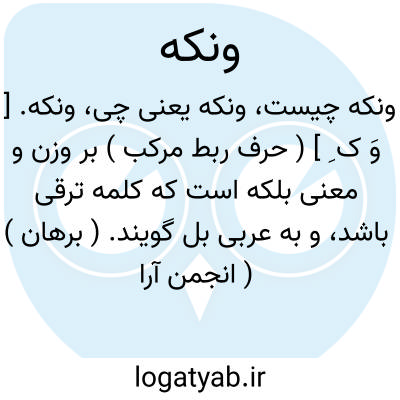 ونکه. [ وَ ک ِ ] ( حرف ربط مرکب ) بر وزن و معنی بلکه است که کلمه ترقی باشد، و به عربی بل گویند. ( برهان ) ( انجمن آرا ).