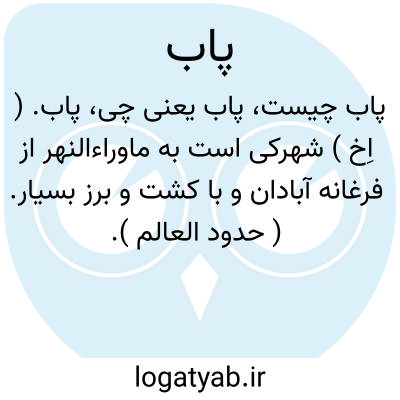 پاب. ( اِخ ) شهرکی است به ماوراءالنهر از فرغانه آبادان و با کشت و برز بسیار. ( حدود العالم ).