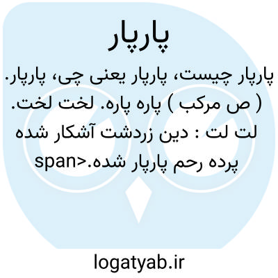 لغت نامه دهخدا پارپار. ( ص مرکب ) پاره پاره. لخت لخت. لت لت: دین زردشت آشکار شده پرده رحم پارپار شده.سنائی.پارپار. ( اِخ ) موضعی به شمال شرقی فارس میان راه قطری و سعیدآباد سیرجان.