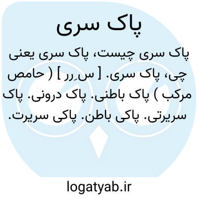 پاک سری. [ س ِرر ] ( حامص مرکب ) پاک باطنی. پاک درونی. پاک سریرتی. پاکی باطن. پاکی سریرت.