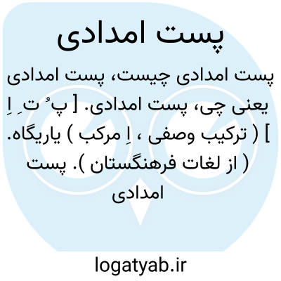 پست امدادی. [ پ ُ ت ِ اِ ] ( ترکیب وصفی، اِ مرکب ) یاریگاه. ( از لغات فرهنگستان ). پست امدادی آموزشگاهها، شفاخانه. ( از لغات فرهنگستان ).