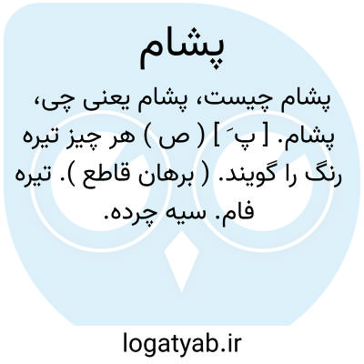 پشام. [ پ َ ] ( ص ) هر چیز تیره رنگ را گویند. ( برهان قاطع ). تیره فام. سیه چرده.