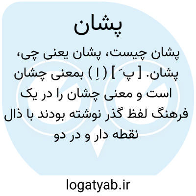 پشان. [ پ َ ] ( اِ ) بمعنی چشان است و معنی چشان را در یک فرهنگ لفظ گذر نوشته بودند با ذال نقطه دار و در دو فرهنگ دیگر گزر با زای نقطه دار. واﷲ اعلم. ( برهان قاطع ). گرز که از سلاح جنگ است. عمود. و ظاهراً هیچ یک از دو معنی که صاحب برهان به پشان داده است صحیح نیست چه خود او در کلمه هزارجشان یعنی کرمةالبیضاء میگوید معنی آن هزارگز است چه چشان بمعنی گز باشد و اگر این دعوی صاحب برهان که میگویدپشان چشان است صحیح باشد نه لفظ گذر و نه لفظ گرز هیچیک صحیح نیست، بلکه هر دو مصحف گز است واﷲ اعلم.