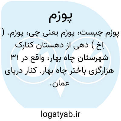 پوزم. ( اِخ ) دهی از دهستان کنارک شهرستان چاه بهار، واقع در 31 هزارگزی باختر چاه بهار. کنار دریای عمان. جلگه، گرمسیر، مالاریائی. دارای 200 تن سکنه. آب آن از چاه و باران، محصول آنجا ماهی و خرما و لبنیات. شغل اهالی زراعت و گله داری و صید ماهی و راه مالرو است. ( از فرهنگ جغرافیائی ایران ج 8 ).