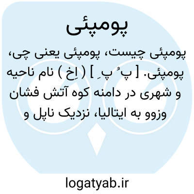 پومپئی. [ پ ُ پ ِ ] ( اِخ ) نام ناحیه و شهری در دامنه کوه آتش فشان وزوو به ایتالیا، نزدیک ناپل و آن شهرکی بوده است دارای سی هزار جمعیت که در سال 79 م. زیر مواد مذاب آتشفشان کوه وزوو مدفون گردید، و در 1748 م. دهقانی مجسمه هائی از آنجا یافت و پس از چندی حفاری شروع شد و تا قرن بیستم بطول کشید.