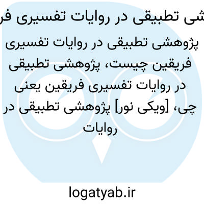 [ویکی نور] پژوهشى تطبیقى در روایات تفسیرى فریقین نوشته مهدی رستم نژاد، کتابی است به زبان فارسی و با موضوع علوم قرآنی.