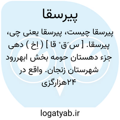 پیرسقا. [ س َق ْ قا ] ( اِخ ) دهی جزء دهستان حومه بخش ابهررود شهرستان زنجان. واقع در 24هزارگزی ابهر و 4هزارگزی شوسه زنجان به تبریز.جلگه و سردسیر دارای 817 تن سکنه. آب آن از قنات و زه آب رودخانه. محصول آنجا غلات و انگور و قیسی و گردو. شغل اهالی زراعت و کارگری و قالیچه و جاجیم بافی است و راه شوسه دارد. ( فرهنگ جغرافیایی ایران ج 2 ).