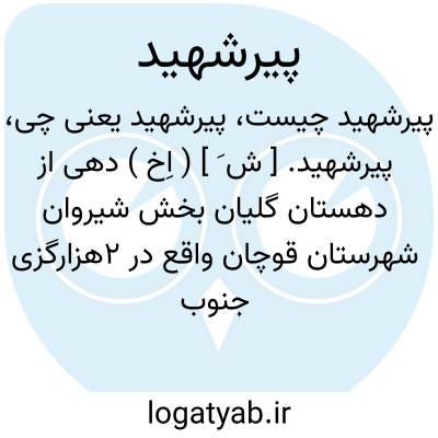 پیرشهید. [ ش َ ] ( اِخ ) دهی از دهستان گلیان بخش شیروان شهرستان قوچان واقع در 2هزارگزی جنوب شیروان، سر راه مالرو عمومی شیروان به گلیان. جلگه، معتدل دارای 345 تن سکنه. آب آن از چشمه و رودخانه محصول آنجا غلات و تریاک و انگور و میوه جات و بنشن. شغل اهالی زراعت و راه آن مالرو است. ( فرهنگ جغرافیایی ایران ج 9 ).
