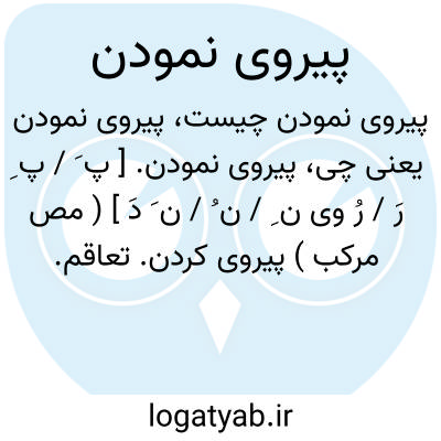پیروی نمودن. [ پ َ / پ ِ رَ / رُ وی ن ِ / ن ُ / ن َ دَ ] ( مص مرکب ) پیروی کردن. تعاقم. تسدی. تقفی. قرو. تقفر، اقتفار؛ پیروی نمودن و در پی رفتن. تعقبل؛ پیروی نمودن کسی را وپس او آمدن. تعجس؛ پیروی کردن کسی را به کاری. ( منتهی الارب ). نیز رجوع به مجموعه مترادفات ص 84 شود.