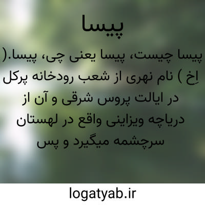 پیسا.( اِخ ) نام نهری از شعب رودخانه پرکل در ایالت پروس شرقی و آن از دریاچه ویزاینی واقع در لهستان سرچشمه میگیرد و پس از تشکیل دادن دریاچه ویستیتر رو بشمال غربی جریان پیدا کند وپس از طی حدود یکصد هزار گز و اخذ پاره ای از انهار در طرف فوقانی اینستربورگ با نهر رومنیته یکی گردد ورودخانه پرکل را تشکیل دهد. ( قاموس الاعلام ترکی ).