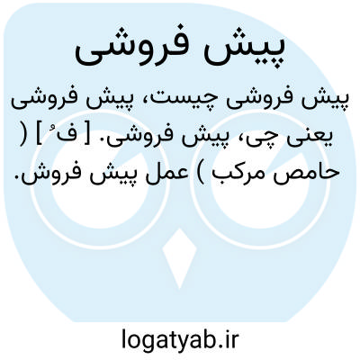 پیش فروشی. [ ف ُ ] ( حامص مرکب ) عمل پیش فروش.