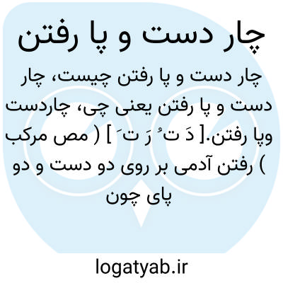 رفتن آدمی بر روی دو دست و دو پای چون ستور. چون گوسفند و شتر و گاو کف هر دو دست و هر دو پای را بر زمین نهاده رفتن. راه رفتن کودکانیکه تازه به راه میافتند. راه رفتن آدمی بشیو. راه رفتن چار پایان.