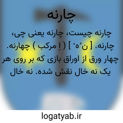 چارنه. [ ن ُه ْ ] ( اِ مرکب ) چهارنه. چهار ورق از اوراق بازی که بر روی هر یک نه خال نقش شده. نه خال گشنیز ( خاج ) و نه خال پیک ( گلابی سیاه ) و نه خال دل ( گلابی قرمز ). و نه خال خشت.