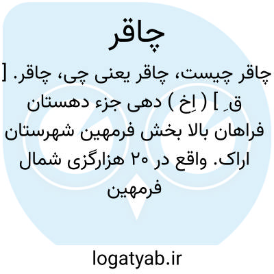 چاقر. [ ق ِ ] ( اِخ ) دهی جزء دهستان فراهان بالا بخش فرمهین شهرستان اراک. واقع در 20 هزارگزی شمال فرمهین و 20 هزارگزی راه مالرو عمومی. دامنه، سردسیر با 223 تن سکنه. آب آن از قنات و رود محلی، محصول آنجا بنشن و ارزن و انگور و بادام. شغل اهالی زراعت و گله داری. و کرباس و جاجیم بافی و راه آن مالرو است و از فرمهین اتومبیل میتوان برد. ( فرهنگ جغرافیائی ایران ج 2 ).