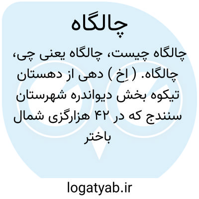 چالگاه. ( اِخ ) دهی از دهستان تیکوه بخش دیواندره شهرستان سنندج که در 42 هزارگزی شمال باختر دیواندره و یک هزارگزی شمال شوسه دیواندره به سقز واقع شده. کوهستانی و سردسیر است و 84 تن سکنه دارد. آبش از چشمه و محصولش غلات و حبوبات و پشم میباشد. شغل اهالی زراعت وراهش مالرو است. ( از فرهنگ جغرافیائی ایران ج 5 ).