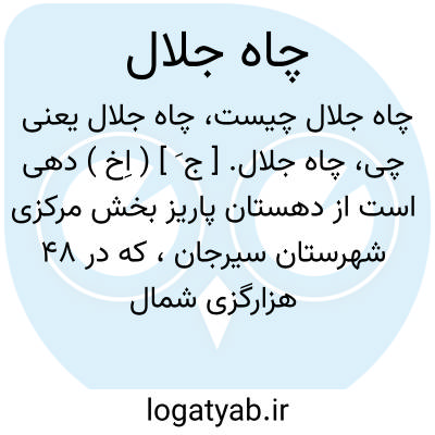 چاه جلال. [ ج َ ] ( اِخ ) دهی است از دهستان پاریز بخش مرکزی شهرستان سیرجان، که در 48 هزارگزی شمال خاوری سعیدآباد بر سر راه زیدآباد به پاریزواقع شده. جلگه و سردسیر است و 150 تن سکنه دارد. آبش از قنات، محصولش غلات و حبوبات، شغل اهالی زراعت وراهش مالرو است. ( از فرهنگ جغرافیایی ایران ج 8 ).