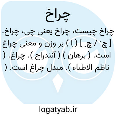 چراخ. [ چ َ / چ ِ ] ( اِ ) بر وزن و معنی چراغ است. ( برهان ) ( آنندراج ). چراغ. ( ناظم الاطباء ). مبدل چراغ است. ( فرهنگ نظام ).رجوع به چراغ شود.