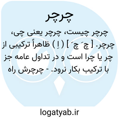 چرچر. [ چ َ چ َ ] ( اِ ) ظاهراً ترکیبی از چر یا چرا است و در تداول عامه جز با ترکیب بکار نرود.