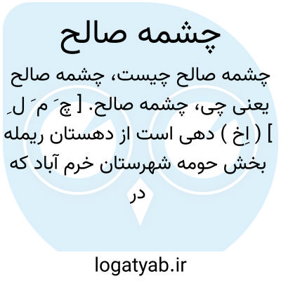 چشمه صالح. [ چ َ م َ ل ِ ] ( اِخ ) دهی است از دهستان ریمله بخش حومه شهرستان خرم آباد که در 24 هزارگزی شمال باختری خرم آباد و 15 هزارگزی باختر راه شوسه خرم آباد به کوهدشت واقع است. تپه ماهوری و معتدل است و 180 تن سکنه دارد.آبش از چشمه، محصولش غلات و لبنیات، شغل اهالی زراعت و گله داری صنایع دستی زنان فرش و سیاه چادربافی و راهش مالرو است. ساکنین این آبادی از طایفه حسنوند هستند برای تعلیف احشام به ییلاق و قشلاق میروند. ( از فرهنگ جغرافیایی ایران ج 6 ).