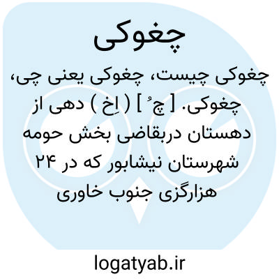 چغوکی. [ چ ُ ] ( اِخ ) دهی از دهستان دربقاضی بخش حومه شهرستان نیشابور که در 24 هزارگزی جنوب خاوری نیشابور واقع است. آبادیی است گرمسیر با اراضی کویر و شوره زار که مسیر بادهای موسمی بلوک عشق آباد میباشد و 10 تن سکنه دارد. ( از فرهنگ جغرافیائی ایران ج 9 ).