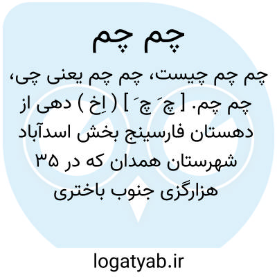 چم چم. [ چ َ چ َ ] ( اِخ ) دهی از دهستان فارسینج بخش اسدآباد شهرستان همدان که در 35 هزارگزی جنوب باختری قصبه اسدآباد و 4 هزارگزی فارسینج واقع است. کوهستانی و سردسیر است و 366 تن سکنه دارد.آبش از چشمه. محصولش غلات، توتون، لبنیات و عسل. شغل اهالی زراعت و گله داری، صنایع دستی زنان قالی بافی وراهش مالرو است. ( از فرهنگ جغرافیایی ایران ج 5 ).، چمچم. [ چ ُ چ ُ / چ َ چ َ ] ( اِ ) به معنی رفتار و خرام آمده است. ( برهان ). رفتار و خرام را گویند. ( جهانگیری ). خرام. ( رشیدی ). رفتار و خرام. ( انجمن آرا ) ( آنندراج ) ( ناظم الاطباء ):