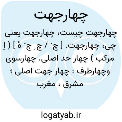 چهارجهت. [ چ َ / چ ِ ج َ هََ ] ( اِ مرکب ) چهار حد اصلی. چهارسوی وچهارطرف: چهار جهت اصلی؛ مشرق، مغرب، شمال و جنوب. چهار جهت فرعی؛ شمال شرقی، شمال غربی، جنوب شرقی و جنوب غربی. || عالم. رجوع به چارجهت شود.