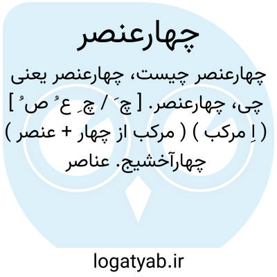 چهارعنصر. [ چ َ / چ ِ ع ُ ص ُ ] ( اِ مرکب ) ( مرکب از چهار + عنصر ) چهارآخشیج. عناصر چهارگانه، آب و آتش و باد و خاک.