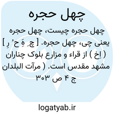 چهل حجره. [ چ ِ هَِ ح ُ رِ ] ( اِخ ) از قراء و مزارع بلوک چناران مشهد مقدس است. ( مرآت البلدان ج 4 ص 303 ). دهی است از دهستان میان ولایت بخش حومه شهرستان مشهد. در 14هزارگزی شمال باختری مشهد و 2هزارگزی جنوب کشف رود واقع است. جلگه و معتدل است و 304 تن سکنه دارد. از قنات آبیاری میشود. محصولش غلات و بنشن و شغل اهالی زراعت و مالداری است. ( از فرهنگ جغرافیایی ایران ج 9 ).