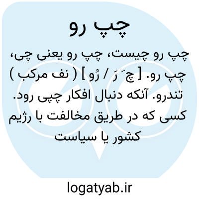 چپ رو. [ چ َ رَ / رُو ] ( نف مرکب ) تندرو. آنکه دنبال افکار چپی رود. کسی که در طریق مخالفت با رژیم کشور یا سیاست دولت گام بردارد. رجوع به چپ و چپ روی شود.