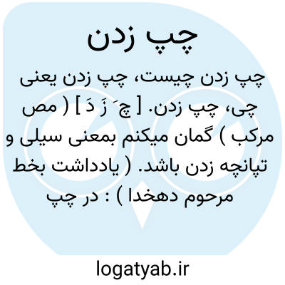 چپ زدن. [ چ َ زَ دَ ] ( مص مرکب ) گمان میکنم بمعنی سیلی و تپانچه زدن باشد. ( یادداشت بخط مرحوم دهخدا ):
